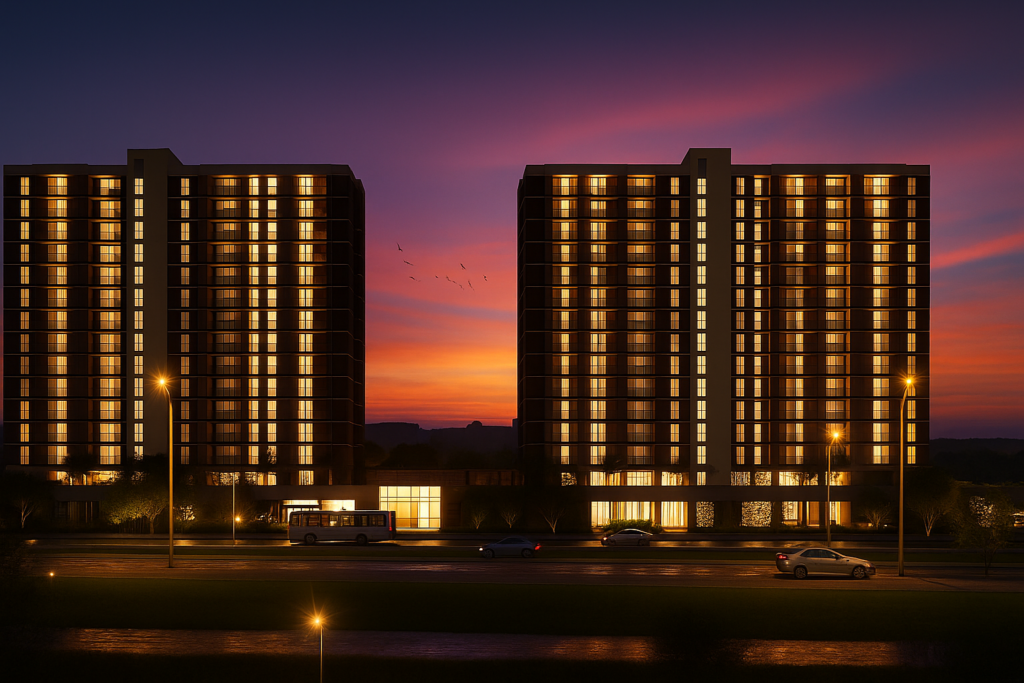 O Lumi Tower Residences surge nesta região estratégica, um empreendimento da Riva Incorporadora com torre única de 11 pavimentos, oferecendo 124 apartamentos de 2 e 3 quartos, todas com suíte e varanda, e coberturas lineares em Taguatinga Sul. O projeto inovador apresenta um “Smart Condomínio” com fechaduras eletrônicas, chaves digitais, medição individual de água e energia, além de previsão para recarga de veículos elétricos.